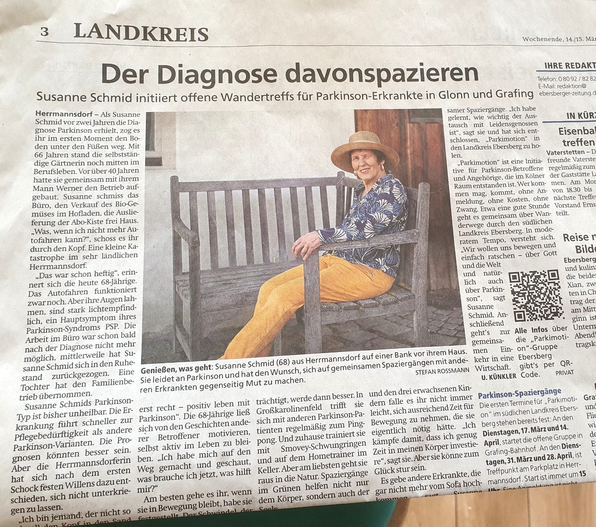 parkimotion lebt davon, dass so viele Betroffene wie möglich, wo auch immer sie wohnen, leben, arbeiten und dieses lesen, von dieser einzigartigen Gelegenheit und Community erfahren. Dabei könnt Ihr helfen. Bitte leitet diesen Link an alle euch bekannten Parkinson-Patienten weiter, um sie auf parkimotion aufmerksam zu machen. Jede Rückmeldung ist ein weiterer Schritt in Richtung einer wachsenden, dynamischen, positiven Gemeinschaft.